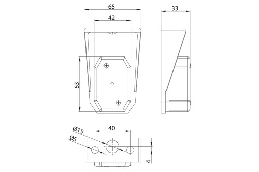 Przednia lampa obrysowa umieszczona na wsporniku kątowym. Zamontowana może być zarówno na boku, jak i z przodu przyczepy.