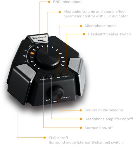 Dzierż w dłoniach pełną kontrolę dzięki stacji audio na USB typu „podłącz i używaj”, która oferuje prawdziwy dźwięk przestrzenny 3D, bardzo skuteczną technologię eliminacji szumów otoczenia (ENC), wzmacniacz słuchawkowy i świetne profile dźwięków w grach. .