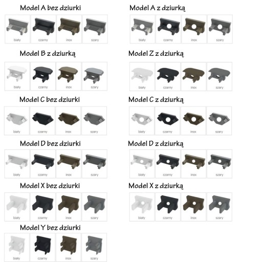 Przedmiotem sprzedaży są zaślepki do profili: A, B, C, D, Y, Z, X