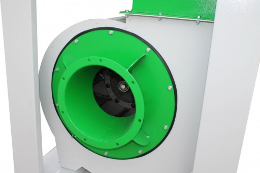 - Wentylator podciśnieniowy 5,5 kW / 6500 m3/h, przy 3000 Pa, działa na zasadzie turbiny, a wygłuszona konstrukcja wentylatora umożliwia znacznie zmniejszenie emitowanego hałasu podczas pracy.