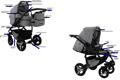 Wózek jest bardzo wygodny dla rodziców oraz komfortowy dla dziecka ,dzięki dużym kołom (koła do wyboru pompowane lub piankowe) obszernemu wnętrzu oraz regulowanej wysokości rączki.