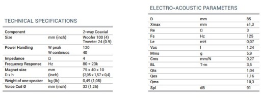 - Pasmo przenoszenia: 80Hz - 23kHz