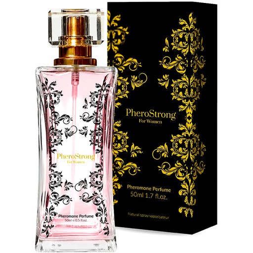 PheroStrong Damskie w szklanym flakoniku o pojemności 50ml z atomizerem, zapakowane w gustowny kartonik