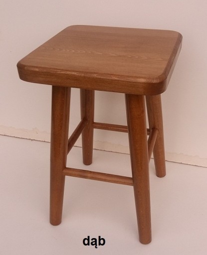 Wytrzymały i stabilny - siedzisko kwadratowe, nogi proste toczone, wzmocnione czterema poprzeczkami.