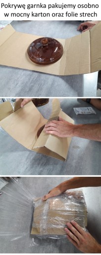 Średnio na 100 garnków zaledwie 1 ulega uszkodzeniu w transporcie . W razie gdyby garnek przyszedł uszkodzony (rozbity lub u szczerbiony) należy wykonać zdjęcia garnka oraz opakowania, a także spisać z kurierem protokół szkody, a następnie przesłać je na naszego maila. Skontaktujemy się z Państwem jak najszybciej. Po przesłaniu przez Państwa dokumentacji najczęściej na następny dzień roboczy wysyłamy nowy garnek.