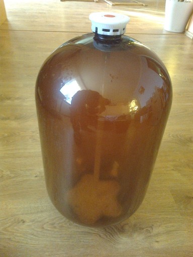 Pojemnik posiada fitting (korek z zaworem) o śr ok 5 cm (do zdemontowania) który zastępuje się korkiem fi 51 mm z rurką fermentacyjną.