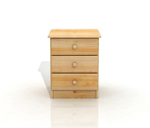 Prosta, klasyczna szafka nocna w całości wykonana z drewna. Posiada trzy szuflady poruszające się na metalowych prowadnicach, dzięki czemu otwieranie i zamykanie jest niezwykle lekkie.