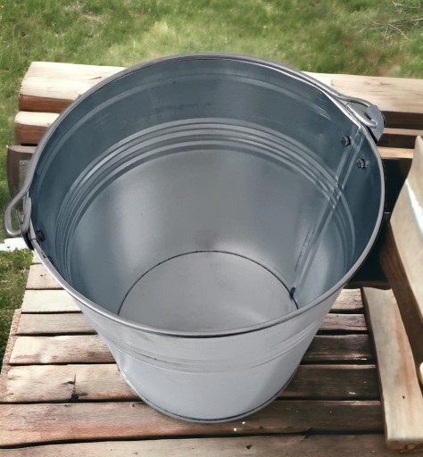 Wiadro wykonane z odpornej na czynniki atmosferyczne i korozję lekkiej blachy ocynkowanej. Posiada płaskie, nisko osadzone dno.