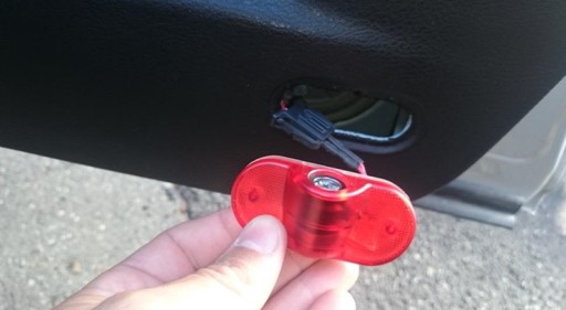 Lampki powitalne wyświetlają logo marki po otworzeniu drzwi.
