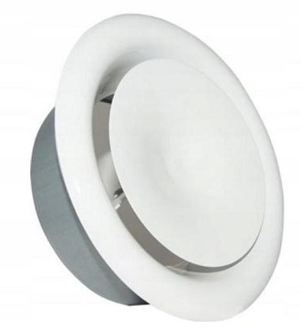 Obrotowy talerzyk anemostatu umożliwia płynną regulację natężenia przepływu powietrza.