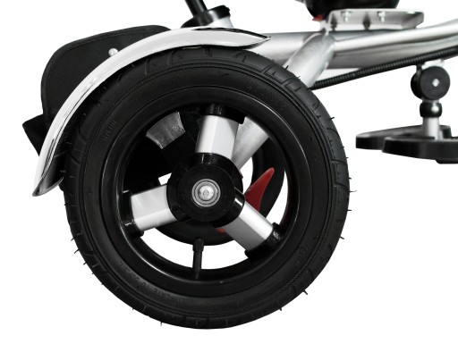 - duże, szerokie pompowane koła zapewniające cichą i komfortową jazdę (średnica kół: przód 12'', tył 10'')