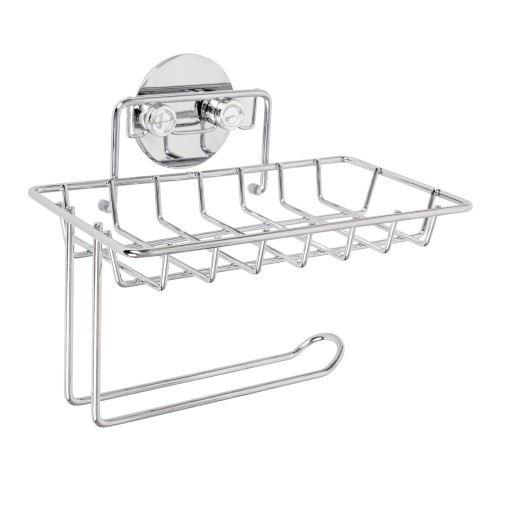 Sklep internetowy magiczna-lazienka proponuje Państwu uchwyt na papier toaletowy z dodatkową półeczką na przykład na telefon. Uchwyt wykonany z drutu chromowanego, przeznaczony do powieszenia na każdej dającej się przykleić powierzchni za pomocą super taśmy 3M (są to takie taśmy jak reklamują w TV typu 3M, Tesa, produkt dla osób które nie chcą wiercić w kafelkach lub ścianie). Wymiary 13,6 x 19,7 x 12cm. Uchwyt bardzo ładny, sprawi że Twoja łazienka stanie się elegancka i niepowtarzalna. Kod produktu: 1395.