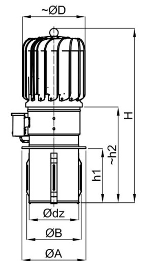 do wspomagania wentylacji grawitacyjnej wywiewnej kiedy występują zawirowania powietrza na wylocie komina spowodowane jego niekorzystnym usytuowaniem