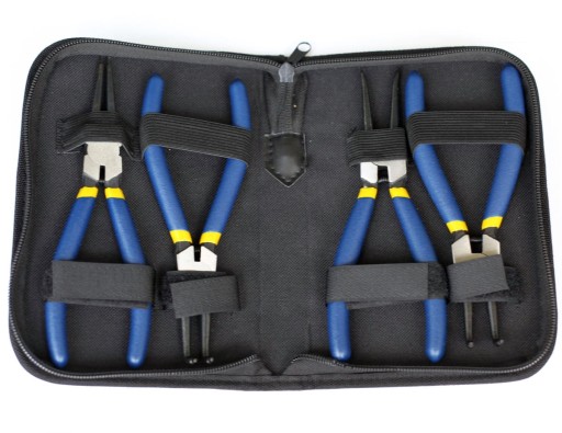 ✅ Zestaw dostosowany do pracy z pierścieniami wewnętrznymi i zewnętrznymi. Posiada szczypce z wygiętymi oraz prostymi końcówkami oraz 2 typy tych zabezpieczeń: wewnętrzne (rozprężne w środku tulei) i zewnętrzne (zaciskowe, na zewnątrz wałka). Szczypce są wykonane z trwałej i wytrzymałej stali chromowo-wanadowej, posiadają rączki pokryte gumą. To doskonałe narzędzia do montażu i demontażu pierścieni sprężystych.