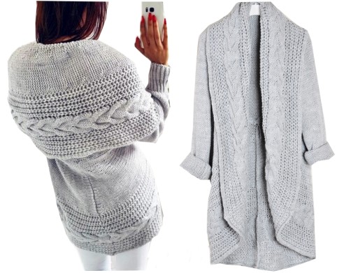 CIEPŁY KARDIGAN NARZUTKA SWETER WARKOCZ K11 Fason luźny