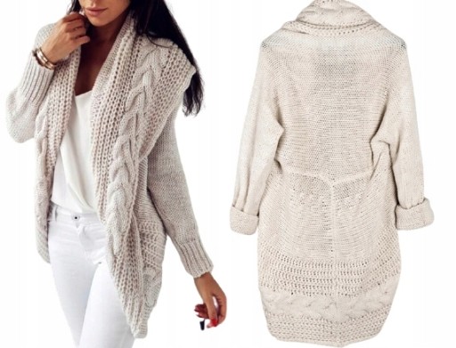 CIEPŁY KARDIGAN NARZUTKA SWETER WARKOCZ K11 Rękaw długi rękaw