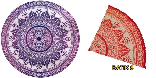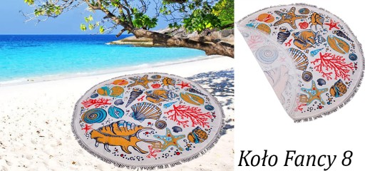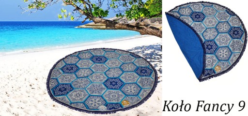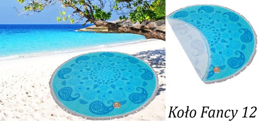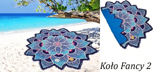 Najnowszy hit wakacji, ręcznik plażowy w kształcie koła. 2w1, koc i ręcznik plażowy. Jedna strona wykonana jest z tkaniny przypominającej bawełnę, druga z cienkiej frotte - kolekcja FANCY i SKIPPER lub z 100% bawełny - kolekcja AQUA I BATIK.