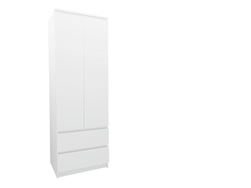 Mebel posiada dwa fronty i dwie bezuchwytowe szuflady. Korpus mebla w kolorze białym i białe fronty szafy zdecydowanie nadają mu niebywałego charakteru. Oryginalny design mebla sprawia, że doskonale wpasuje on się do każdego wnętrza.
