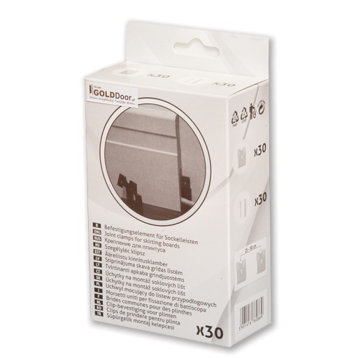 Jest to nowy i unikalny sposób montażu listew na ścianie. System można stosować przy dowolnej wysokości listwy od 80 do 120 mm z oferty GOLD Door. Sprawia, że montaż jest łatwy nawet wtedy, gdy ściany są nierówne. Jeden system dla wszystkich profili i wysokości listew. Elementy wykonane ze stali sprężynowej z ochroną przed korozją, kanał dla kabli oraz możliwość demontażu i ponownego montażu listew bez użycia narzędzi.