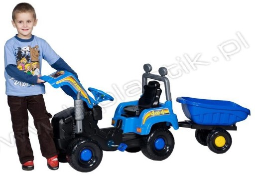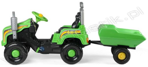 TRAKTOREK POSIADA NAPĘD NA PEDAŁKI ( Z MECHANIZMEM ŁAŃCUCHOWYM ) ORAZ SKRĘTNĄ KIEROWNICĘ, ZA POMOCĄ KTÓREJ DZIECKO KIERUJE CAŁYM ZESTAWEM !!!!