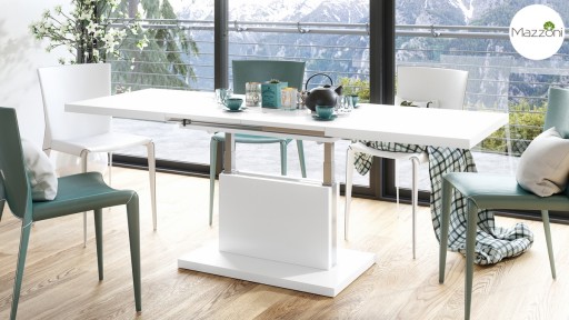 - dzięki synchronicznym prowadnicom zastosowany został wygodny system rozsuwania blatu (gdy zaczniemy rozkładać mebel z jednej strony, automatycznie przesunie się też jego druga część)