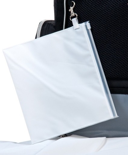 Zewnętrzna kieszeń (po rozsunięciu zamków) pełni funkcję wygodnego przewijaka, a tuż obok znajduje się specjalne miejsce na zużytą pieluszkę.