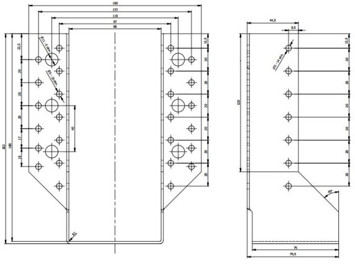 - ilość otworów - 40 otworów ø5mm, 6 otworów ø11mm