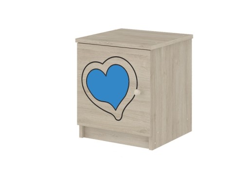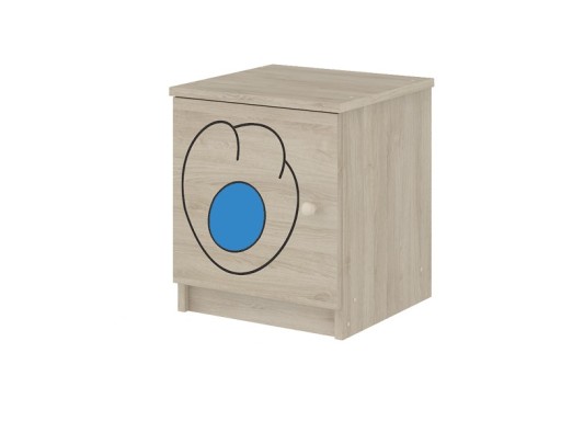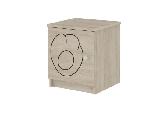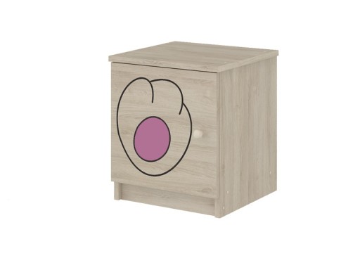 Szafka nocna wykonana jest z płyty wiórowej, o grubości 16 mm. Na drzwiczkach znajduje się kolorowy nadruk, bądź grawerowany wzór.