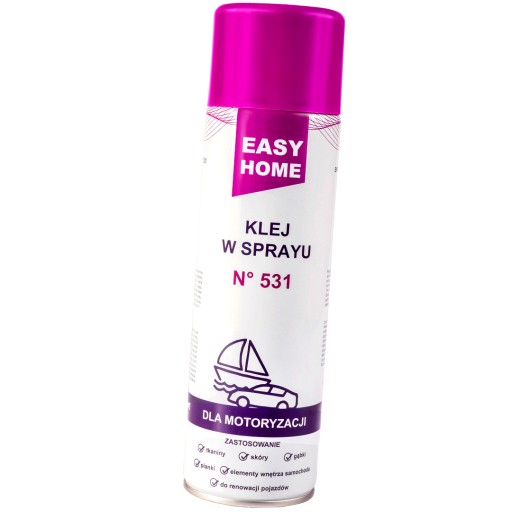 Easy Home 531 klej kontaktowy w sprayu – klej samochodowy odporny na temperaturę doskonały do prac montażowych i tapicerskich w motoryzacji.