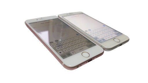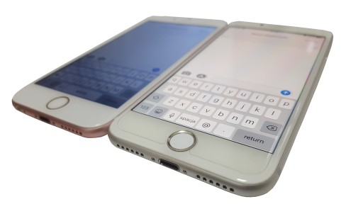 Po prawej stronie telefon posiada oryginalny refabrykowany wyświetlacz retina , natomiast po lewej stronie widoczny jest ten sam model telefonu, który posiada najwyższej jakości zamiennik. Rożnicę w jakości wyświetlanych barw widać gołym okiem.