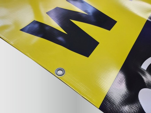 Klikając kup teraz zamawiasz bardzo mocny baner wykonany z frontlitu. Charakteryzuje się on gęstym splotem, a dzięki zastosowaniu oczek o średnicy 12 mm może zostać solidnie zamocowany w każdym miejscu.