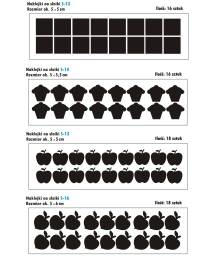 - Wybór wzoru naklejek-etykiet, np. Naklejki na słoiki S-01 (brak informacji wysyłamy losowo)