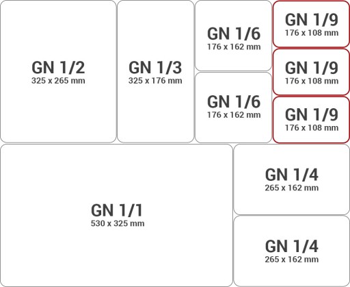 Wymiary pojemników zgodne są z normą GASTRO NORM PN-EN 631-1:1996, co oznacza, że ich wymiary są dokładnie określone: