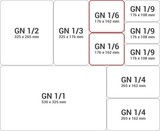 Wymiary pojemników zgodne są z normą GASTRO NORM PN-EN 631-1:1996, co oznacza, że ich wymiary są dokładnie określone: