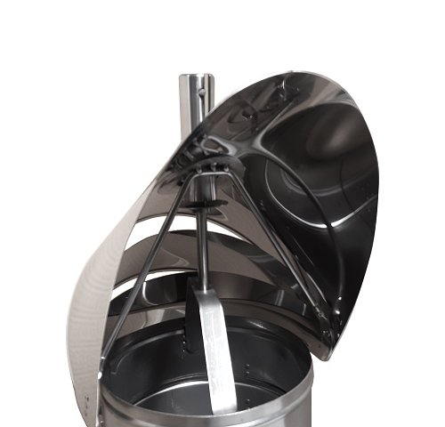 Samonastawna nasada kominowa ROTOWENT DRAGON jest urządzeniem dynamicznie wykorzystującym siłę wiatru do wspomagania ciągu kominowego. Niezależnie od kierunku, siły i rodzaju wiatru, wylot kołpaka nasady ustawia się po zawietrznej stronie wiejącego wiatru.