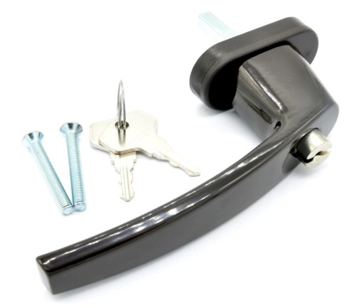 Opis: klamka wykonana jest z aluminium polakierowanego na brązowo (podstawa umożliwiająca przykręcenie wykonana jest z tworzywa). Klamka wyposażona jest w zamek umożliwiający zablokowanie klamki okna w pozycji zamkniętej. Blokada zabezpiecza okno przed niepowołanymi osobami z zewnątrz, nawet po zbiciu szyby a dodatkowo stanowi zabezpieczenie przed dziećmi, które zwłaszcza w wysokich budynkach mogłyby otworzyć okno. Montaż polega na odkręceniu starej klamki (2 wkręty zakryte zaślepką) i przykręceniu w miejsce starej - nowej klamki. Klamkę przykręca się dwoma wkrętami 5,0 x 40 mm.