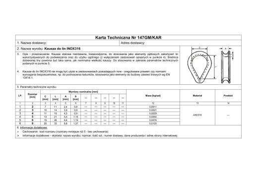 - Kausza kwasoodporna , nierdzewna , stosowana jako elementy pętlowych zakończeń lin.