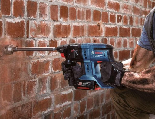 Profesjonalna młotowiertarka model GBH 180-LI firmy BOSCH to specjalistyczne urządzenia z dużą skutecznością i wydajnością pracy. Posiada porównywalne parametry techniczne co młotowiertarka z zasilaniem elektrycznym. Zoptymalizowany mechanizm udarowy z funkcją kucia pozwala na wiercenie w betonie otworów o maksymalnej średnicy 20mm (optymalny zakres od 6 do 12mm), a dzięki energii udaru wynoszącej - 2,0J, jest równie szybka jak młotowiertarka z zasilaniem elektrycznym klasy 2kg (np. GBH 240 firmy BOSCH).