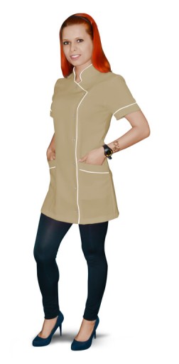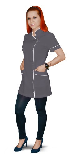 Rękaw fartucha jest krótki, dzięki czemu świetnie nadaje się na cieplejsze pory roku.