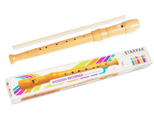 Flet prosty drewniany, w pięknym naturalnym kolorze wykonany z trwałego drewna najwyższej jakości. Przydatny podczas zabawy w domu i nauki w szkole. W komplecie przyrząd do czyszczenia.