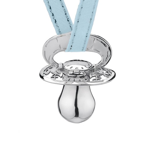 Oferowanym przedmiotem jest smoczek. Jest to idealny prezent na chrzest lub narodziny chłopca i dziewczynki. Wykonany jest w całości ze srebra w próbie 925 (posiada próbę urzędu probierczego w Warszawie). Grawerowanie danych na smoczku, etui oraz dedykacja do pudełeczka są gratis.