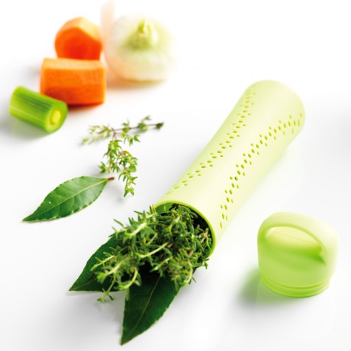 Silikonowa tuba na przyprawy lub zioła, którą można włożyć do bulionu, rosołu, sosu.