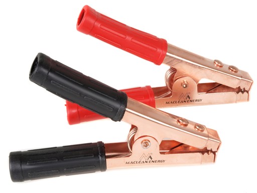 Solidne, duże krokodyle z rączkami izolowanymi o maksymalnym prądzie 400A idealnie nadające się do zmontowania własnych kabli rozruchowych bazujących na przewodach typu LGY bądź ONS.