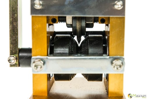 Korowarka jest bardzo prosta w obsłudze. Wprowadzamy przewód między dwa wałki, które przylegają do kabla i prowadzą go idealnie wzdłuż noża. Za pomocą pokrętła umieszczonego na urządzeniu regulujemy wysokość noża a tym samym średnicę przewodu.