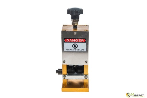 Korowarka jest bardzo prosta w obsłudze. Wprowadzamy przewód między dwa wałki, które przylegają do kabla i prowadzą go idealnie wzdłuż noża. Za pomocą pokrętła umieszczonego na urządzeniu regulujemy wysokość noża a tym samym średnicę przewodu.