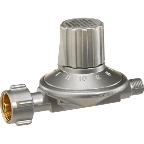 Reduktor gazu propan, propan butan. Regulacja ciśnienia na wyjściu odbywa się poprzez obracanie pokrętłem i wybór jednej z pozycji 1-11 na tarczy. W ten sposób można regulować ciśnienie w 11 stopniach w przedziale od maksymalnego 50 mbar do minimalnego 25 mbar.
