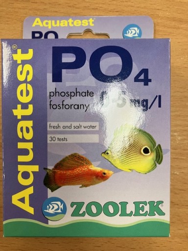 Aquatest PO4 służy do pomiaru stężenia jonów fosforanowych PO4-3 w wodzie słodkiej i morskiej. Fosforany są produktem rozkładu substancji organicznych gromadzących się w wodzie akwarium. Zbyt wysokie stężenie fosforanów może być przyczyną niekontrolowanego wzrostu glonów. Zakres 0 - 5 mg/l.