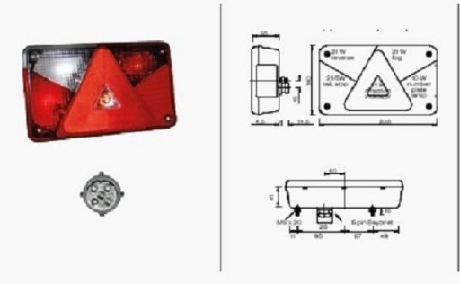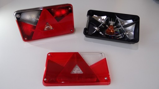 - lampa Multipoint V zespolona, która spełnia funkcje drogowe: światła, kierunkowskazy, pozycyjne, stop, światło przeciwmgielne, światło cofania, trójkąt odblaskowy
