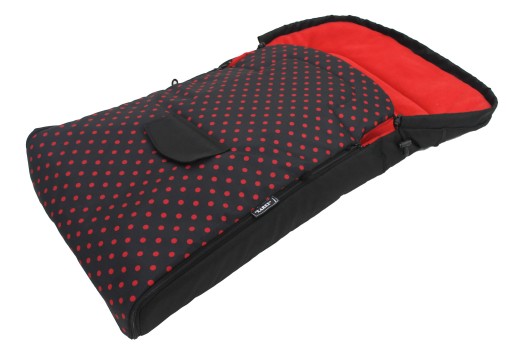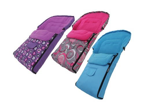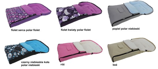 Znajdujące się w nim otwory umożliwiają przypięcie dziecka pasami wózka lub fotelika.Śpiwór zapinany jest na 2 zamki błyskawiczne co umożliwia całkowite odpięcie przykrycia