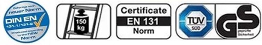 Oferowana drabina przystawna serii STABILO jest sprawdzana i testowana pod względem bezpieczeństwa oraz spełnia obowiazujące normy BHP. Posiada również certyfiat i deklarację zgodności oraz potrzebną do prawidłowego zastosowania, instrukcję montażu i użytkowania
